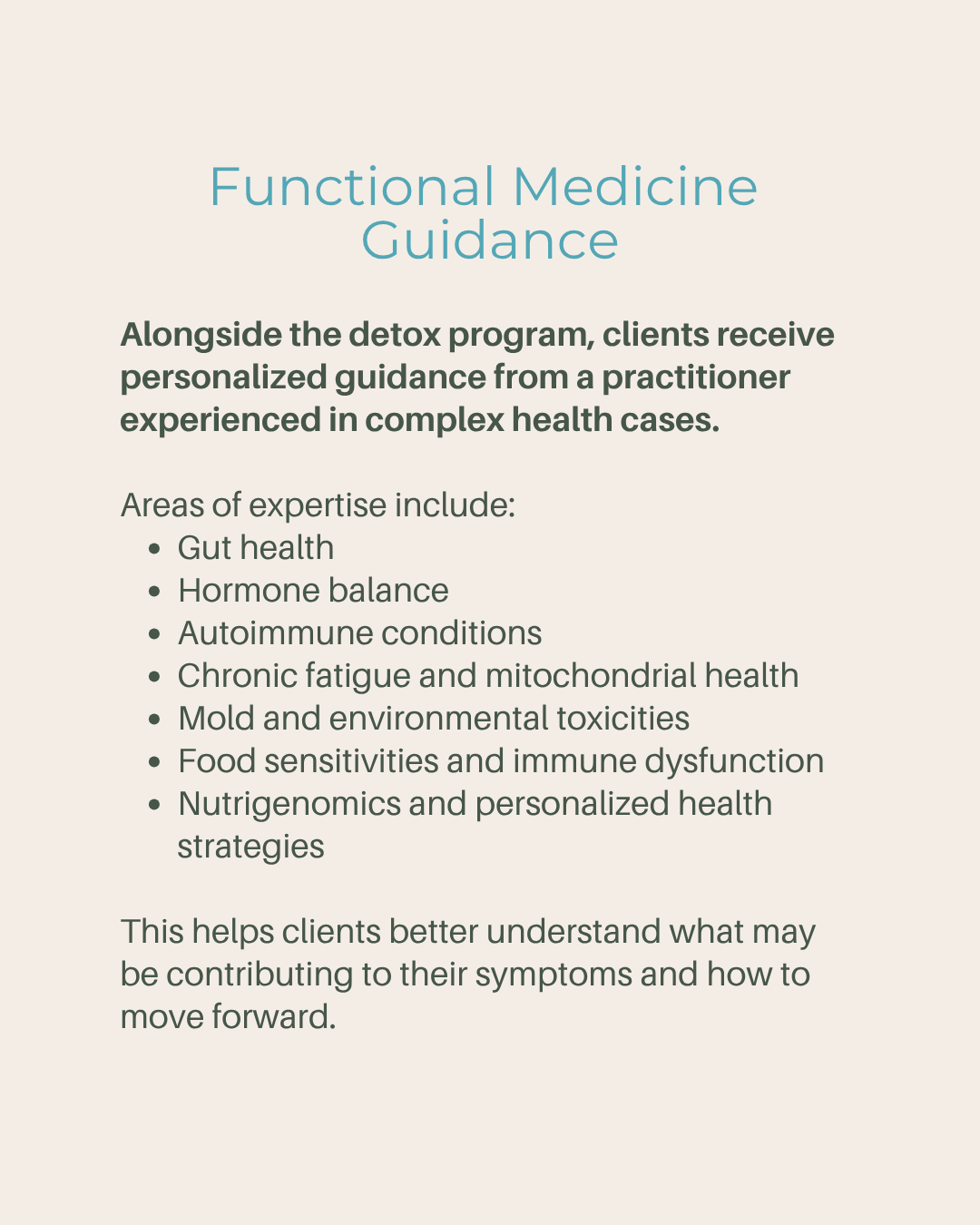 - Nutrition + detox support